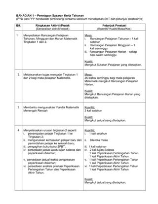 ASDI BIL RINGKASANAKTIVITI PROJEK KUANTITI PETUNJUK PRESTASI KUALITI MASAKOS. Sasaran Kerja Tahunan By Cg Wann Issuu. BAHAGIAN 1 Penetapan Sasaran Kerja Tahunan Tahun 2011.