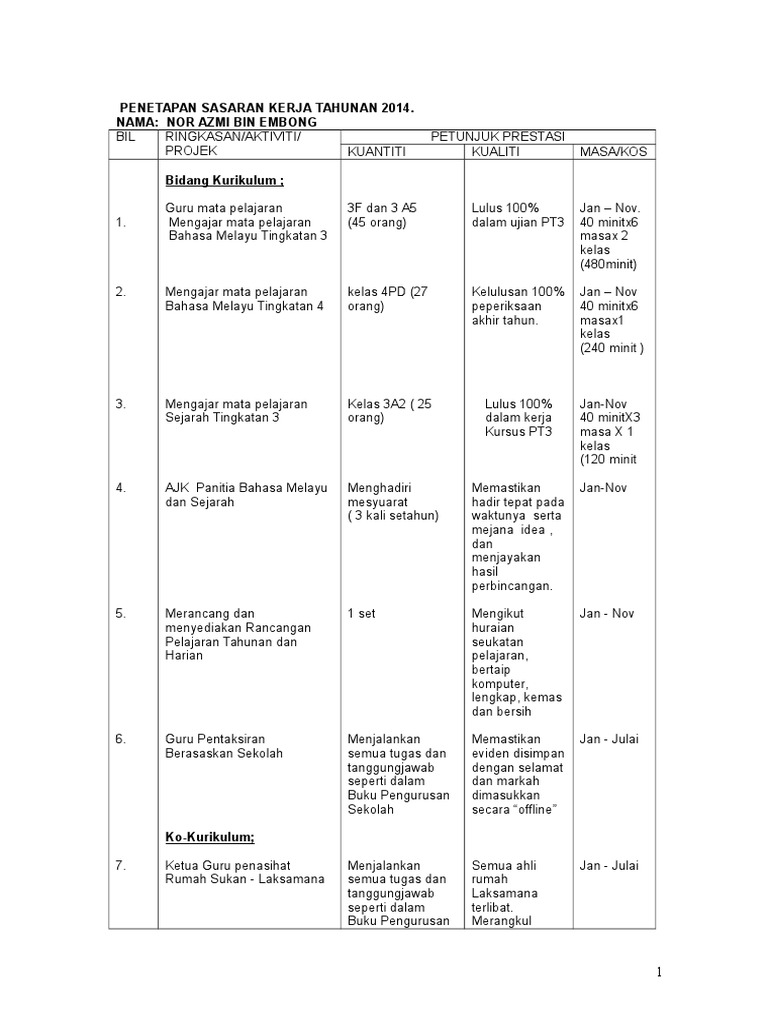 Contoh Sasaran Kerja Tahunan Pdf